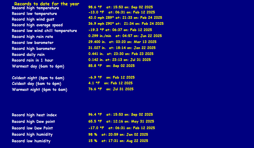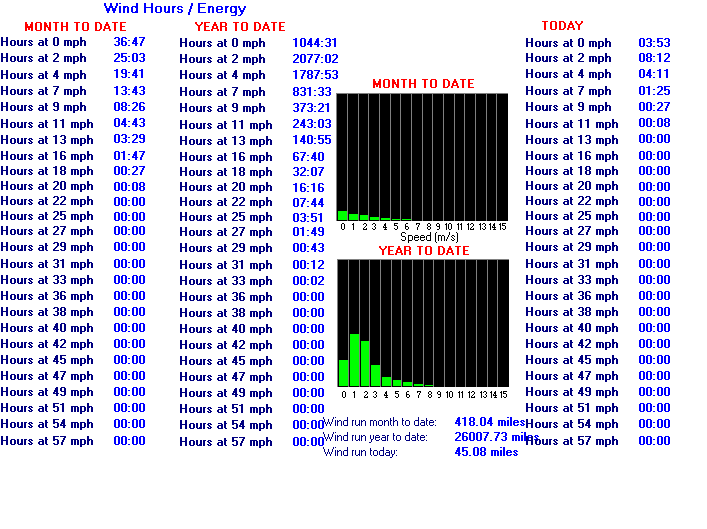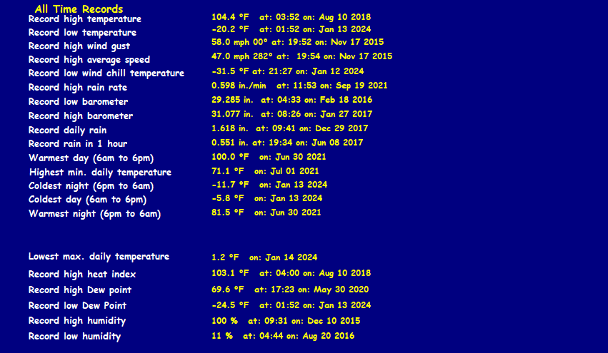 Maximum Gust (since midnight) | 13.0 mph at: 4:42 AM | Maximum 1 minute average (since midnight) | 11.7 mph at: 4:42 AM |