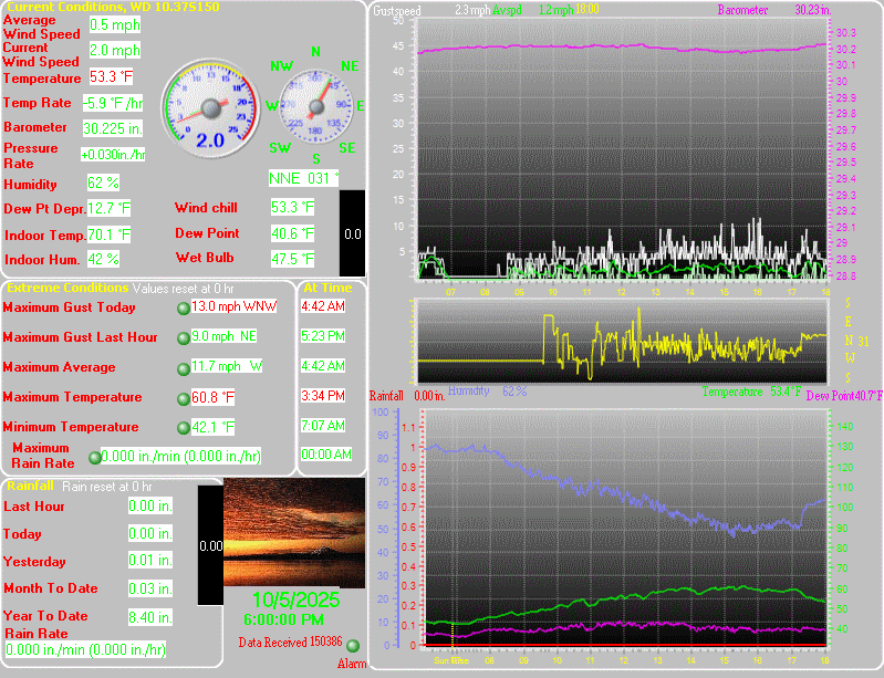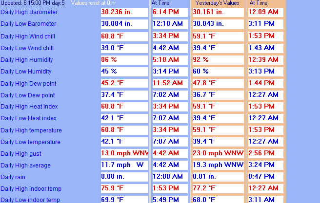 Windchill Temperature | 59.0°F | Maximum Gust (last hour) | 11.0 mph at: 3:51 PM |